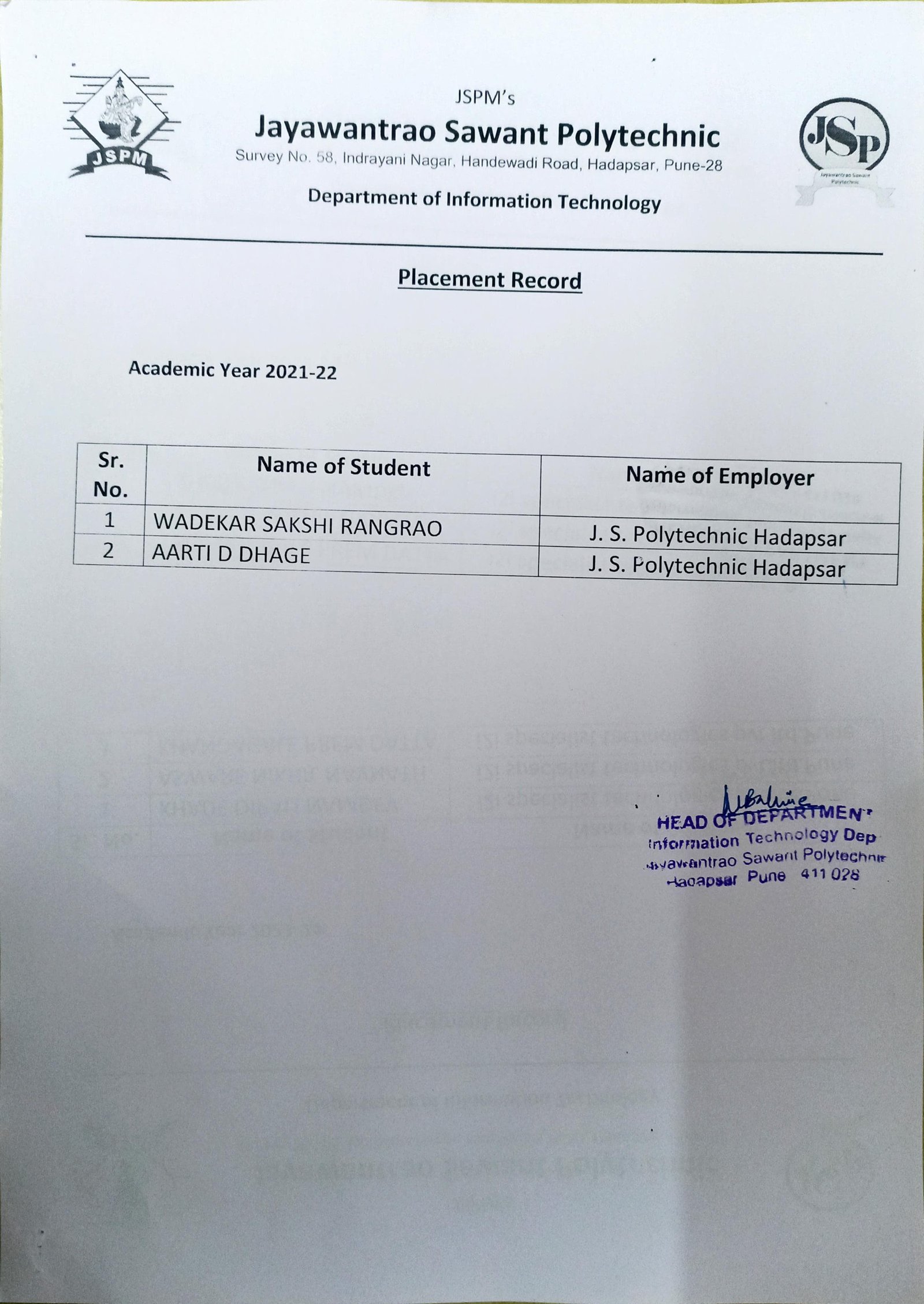 JSPM'S JAYAWANTRAO SAWANT POLYTECHNIC, PUNE