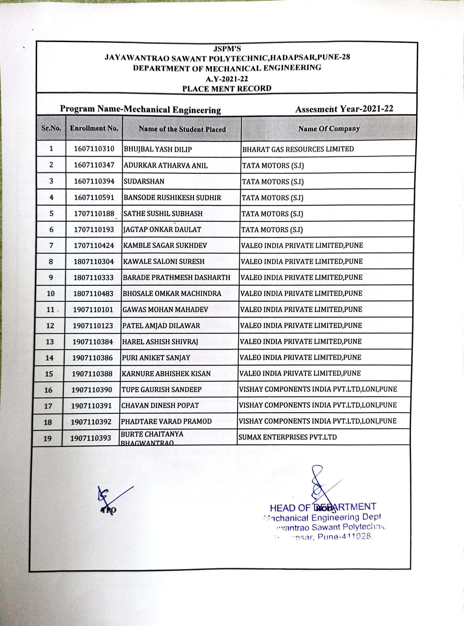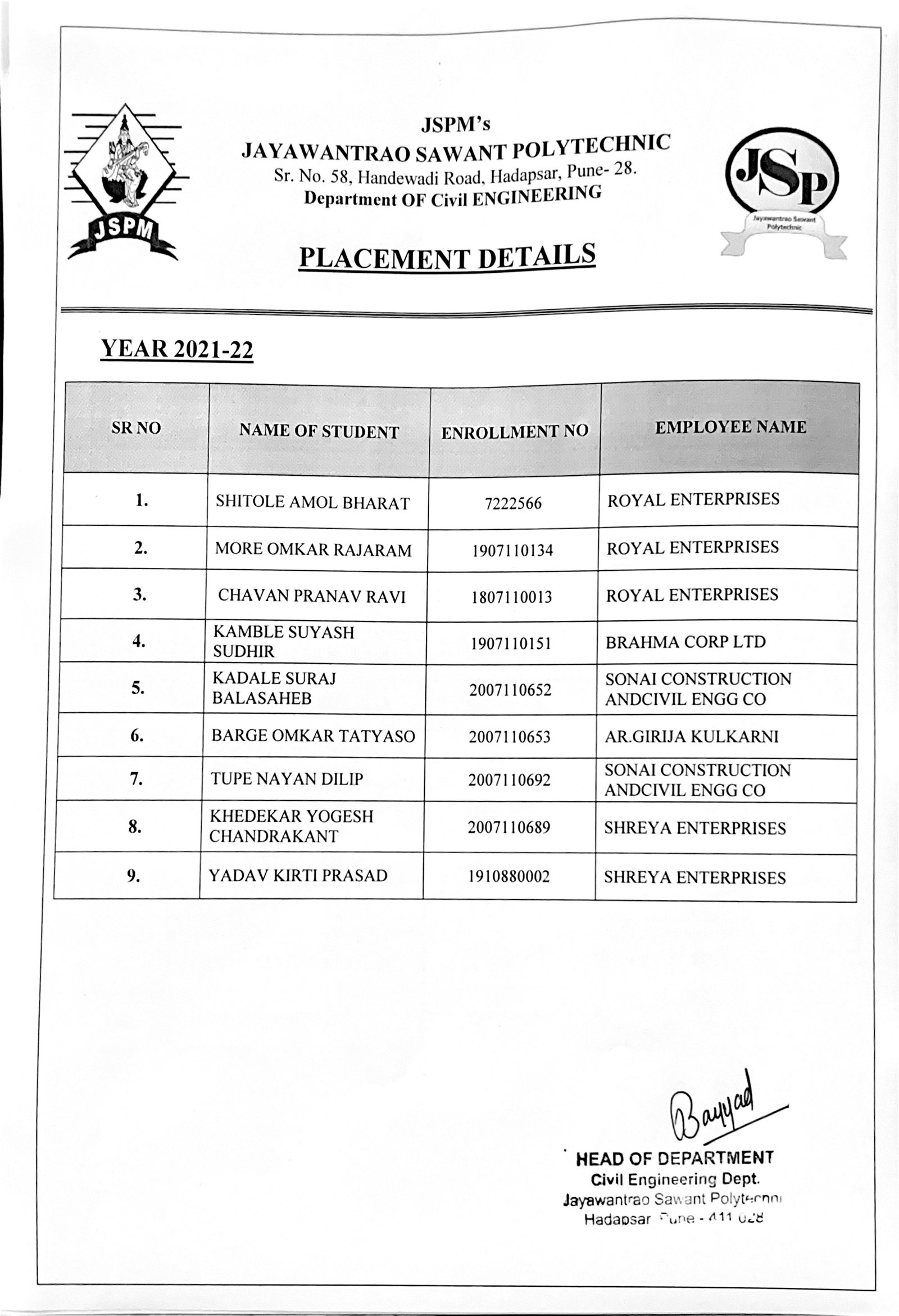 Sr. No. Details Attachments